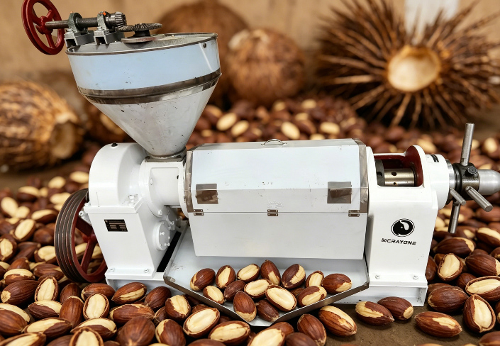 После очистки, дробления, разделения ядра и скорлупы и нагрева-регулирования сырье поступает в прессовальную камеру. При высоком давлении экструзия быстро отделяет масло, обеспечивая непрерывное производство. Остаточное содержание масла в жмыхе составляет менее 8-10%, что соответствует стандартам производства пищевого и промышленного пальмового керосинового масла.
